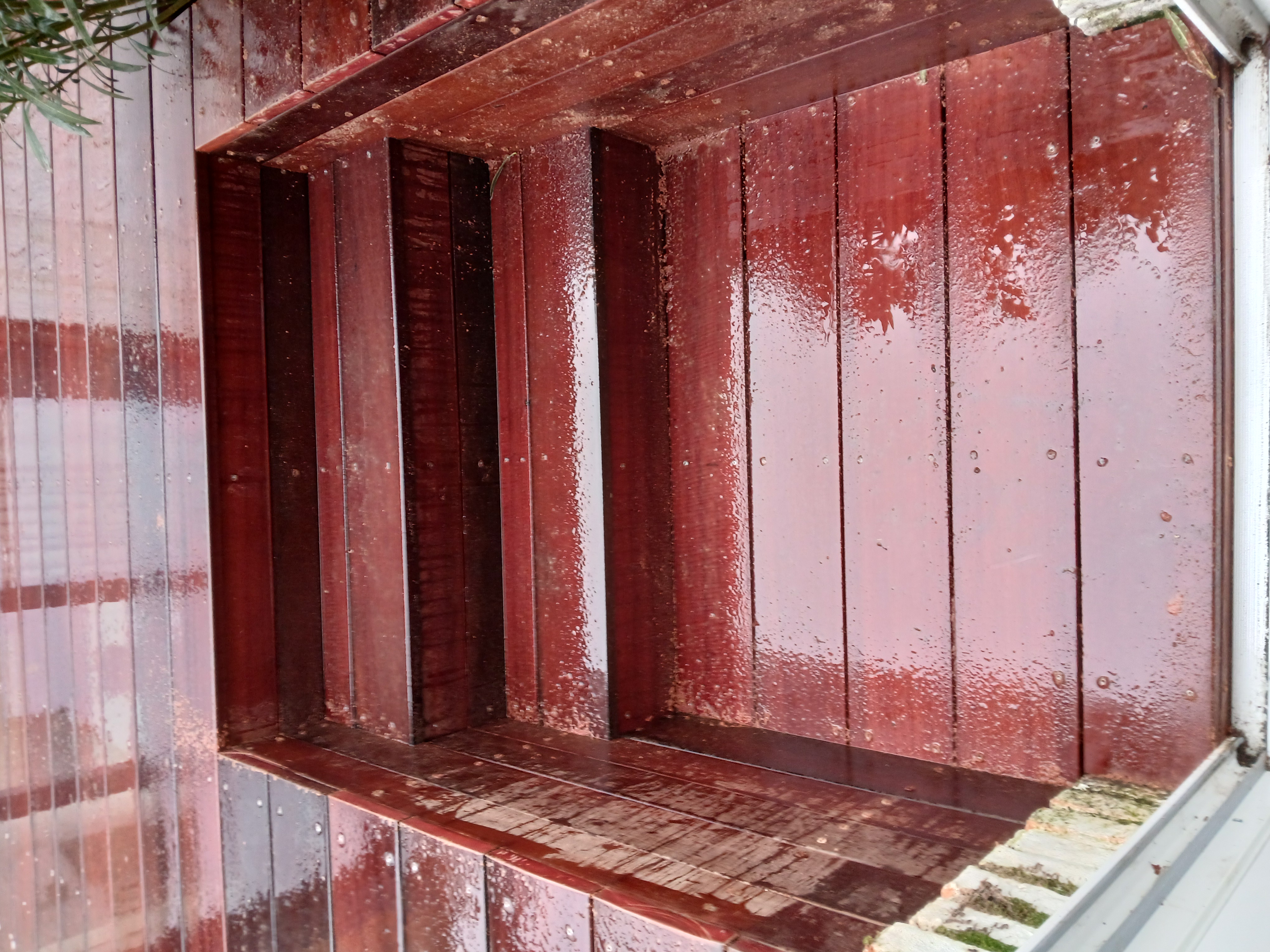 Een oud dakterras van thermowood afgebroken en er twee nieuwe terrassen mee gemaakt in de tuin. Veel duurzamer wordt het niet!